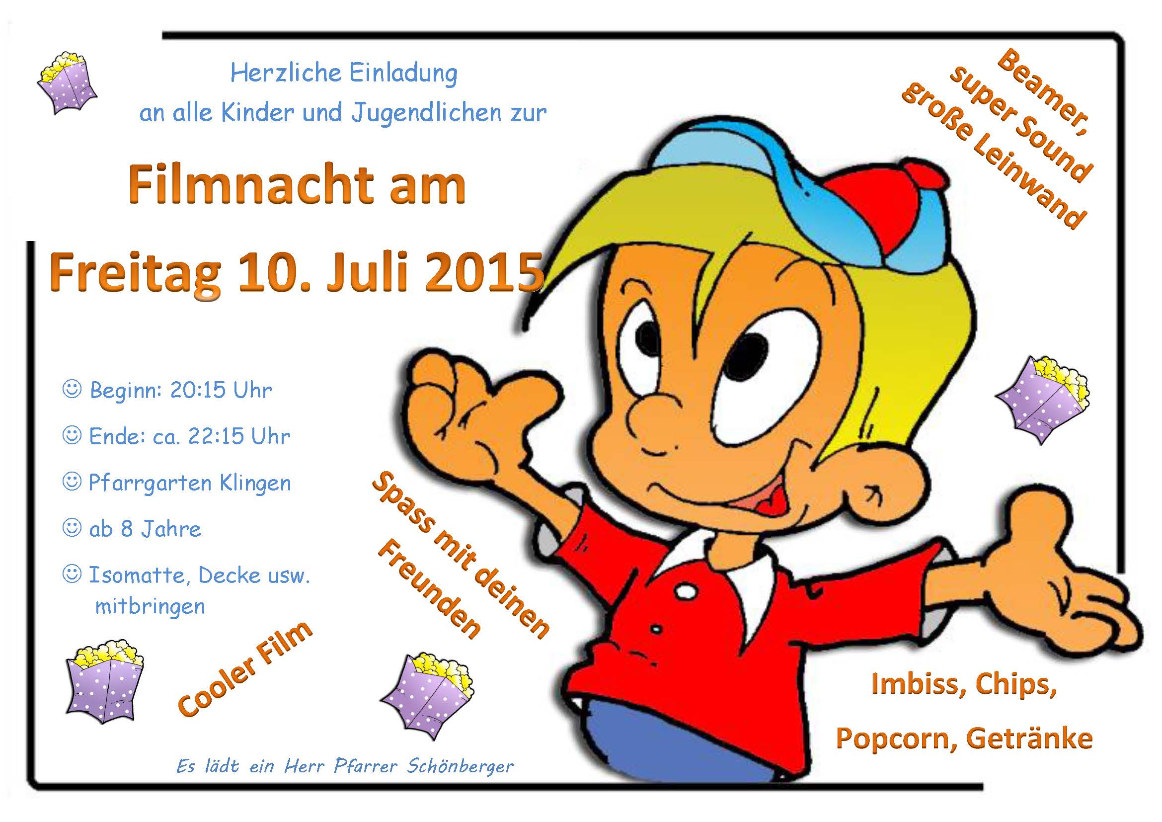 (CP) Herzliche Einladung an alle Kinder (ab 8 Jahre) und Jugendlichen zur diesjährigen Filmnacht