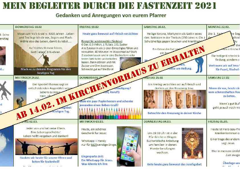 (CP) Herr Pfarrer Schönberger hat für die Fastenzeit 2021 für unsere Pfarreien einen ganz besonderen Kalender erstellt.