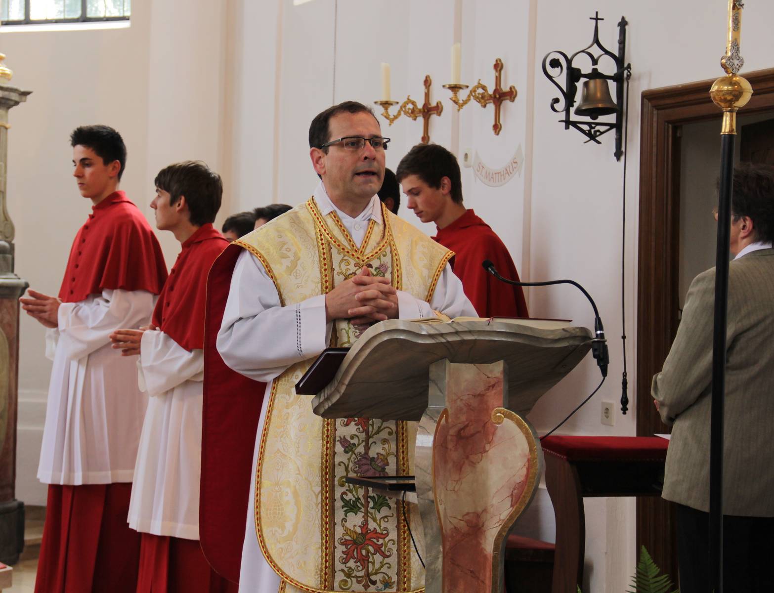 (XS) Vor 20 Jahren, am Donnerstag, den 27. Juni 1993 wurde unser Herr Pfarrer Michael Schönberger im hohen Dom zu Augsburg zum Priester geweiht. Aus diesem Anlass haben sich unsere Pfarreien Klingen, Mauerbach und Thalhausen am Sonntag, den 30. Juni in der Klingener Pfarrkirche versammelt, um mit Herrn Pfarrer Schönberger dieses Jubiläum in einem feierlichen Gottesdienst zu begehen. 250 Kirchenbesucher, davon rund 80 Ministranten und Lektorinnen, Kinder und Jugendliche dankten und gratulierten Ihrem Hirten für seine Fürsorge und Hingabe um die Verkündigung der Frohen Botschaft Jesu Christi. Allen, die an dieser Feier teilgenommen haben und mitgewirkt haben, danken wir von Herzen. Das Miteinander aller drei Pfarreien, von Jung und Alt, unserer Gremien und Chöre, unserer Ministranten und Lektorinnen ist nicht zuletzt auch Frucht des Wirkens und Mühens unseres Herrn Pfarrer Schönbergers. Dies zu erleben und zu erfahren war nach seinem Bekunden das schönste Geschenk zu diesem Tag. (Auszug aus dem Bericht im Sommerpfarrbrief 2013) |
